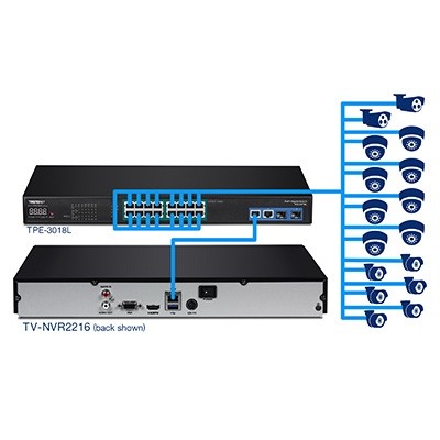 ضبط ویدئو از 16 کانال | امکان مدیریت تا شانزذه دوربین TRENDnet | پشتیانی از ۲ هارد با ظرفیت بیش از ۱۲ ترابایت