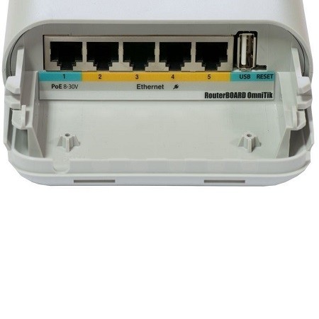 OmniTIK 5 PoE یک رادیوی کاملا ضد آب میباشد که برای کار در فضای بیرونی طراحی و تولید شده است، این رادیو از ساختار یکپارچه رادیو و آنتن بهره میبرد و برای کار در فرکانس 5 گیگاهرتز آماده شده است، OmniTik همچنین از 2 عدد آنتن 7.5dBi امنی 360 درجه با ساختار دو قطبی بهره میبرد،  این رادیو شامل پنج پورت گیگابیت اترنت ( در پورت 1 از استاندارد POE پشتیبانی مینماید و همچنین بر روی پورت 2 تا 5 این محصول قابلیت خروجی POE بیرونی فعال میباشد به طوری که با استفاده از پورت های ذکر داده شده میتوانید دستگاه دیگر با ولتاژ مشابه را روشن نمائید )، پورت USB ( قابلیت اتصال مودم 3G و یا به عنوان یک درایو ذخیره ساری) و پردازنده ی 400 مگاهرتزی میباشد. با توجه به سطح دسترسی L5 از این رادیو میتوانید در بخش مرکزی شبکه خود به عنوان یک AP برای پوشش سراسری Wifi در فرکانس 5 گیگاهرتز استفاده نمائید و تعداد کاربران بیشتری را در سمت گیرنده داشته باشید.